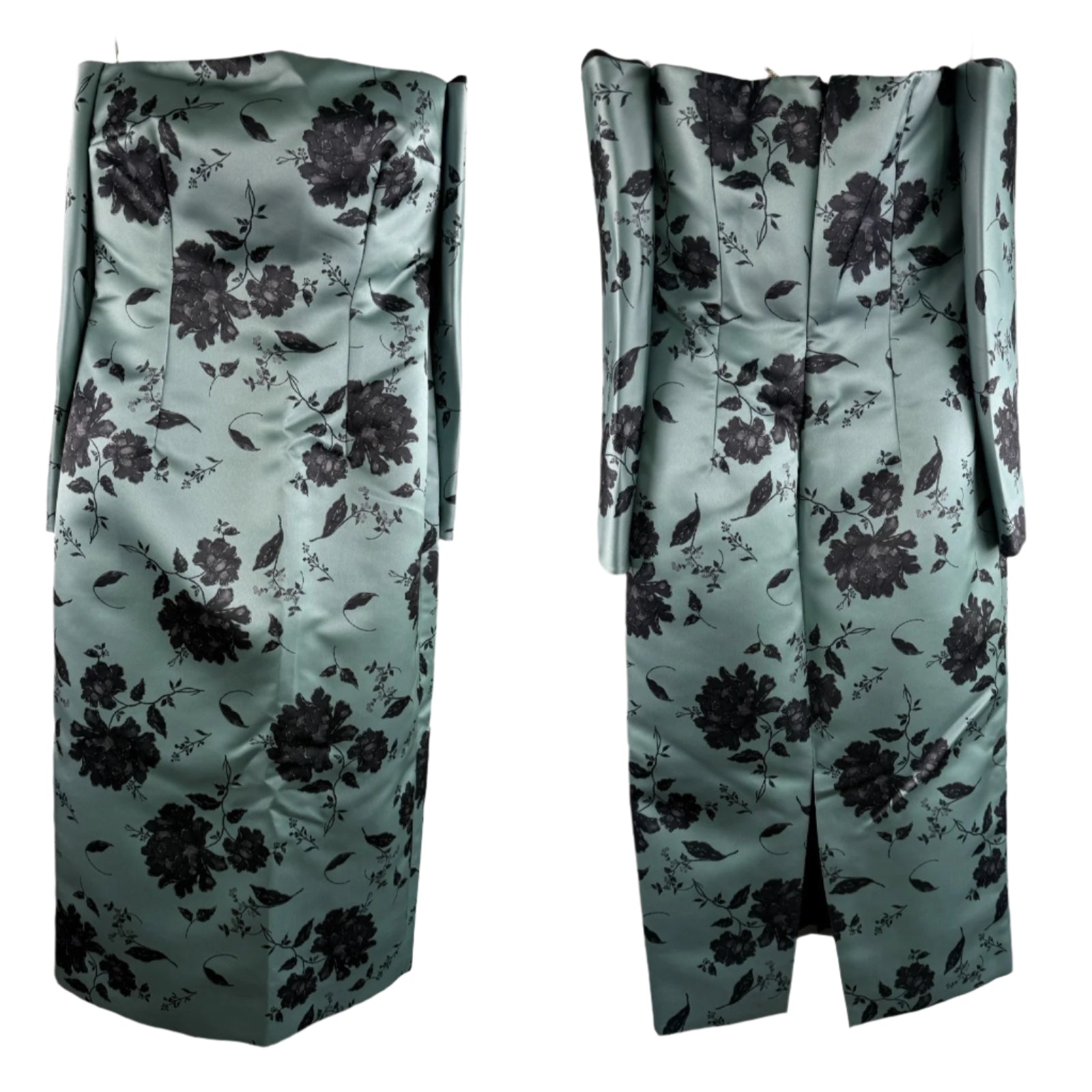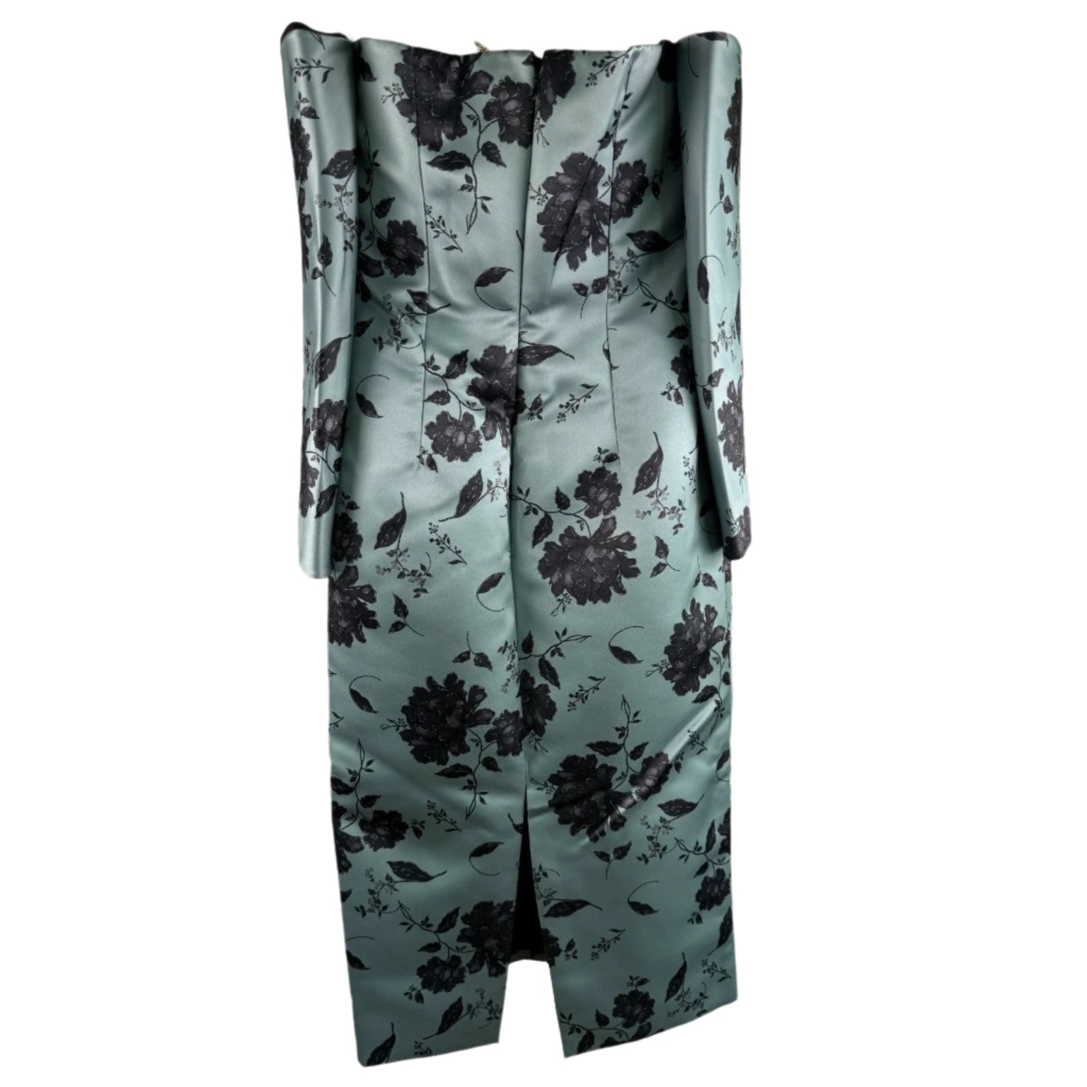 Emilia Wickstead Rose on Pistachio Melina Off Shoulder Dress US 10 / UK 14